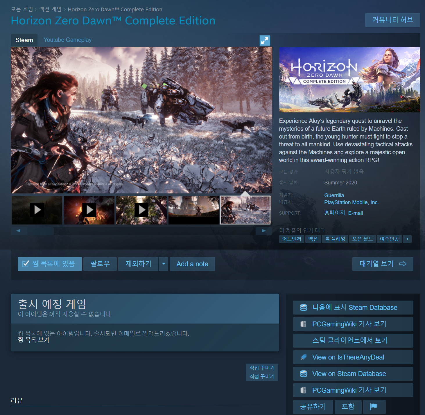 주소: https://store.steampowered.com/app/1151640/Horizon_Zero_Dawn_Complete_Edition/