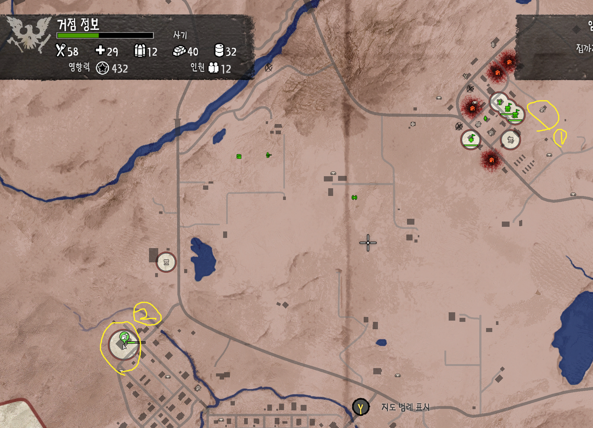 - 개선시키는 방법 : 쉽게 말해 사기를 올리는 행동을 하면 개선된다. 자원을 계속 가져다 나르면 잘 오르며, 다른 생존자 그룹을 도와주거나 좀비 소굴과 좀비 무리를 제거하는 것으로도 개선시킬 수 있다. 시설, 건축 완성 미션으로도 개선된다고 한다.
