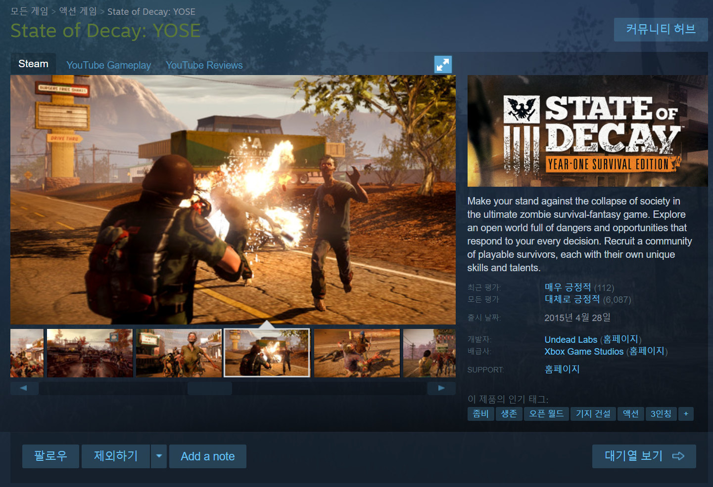 게임제목: State of Decay: YOSE 스테이트 오브 디케이