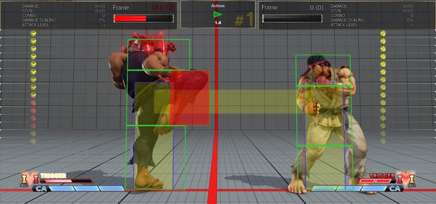 다만 맨 밑의 speed modifier로 속도를 늦춰서 판정박스를 보다보면 프레임 유불리 표시가 틀려지는 것 같음 판정만 보길