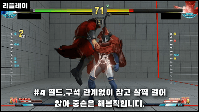 만약 앉약손을 카운터내면 앉중손이 이어져 위 연속기가 가능하므로 앉중손 시동 콤보에 애드립으로 생각해도 될듯