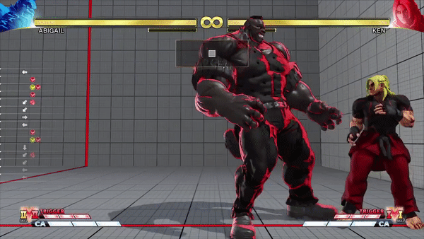 덩치캐인 주제에 러시가 제법 강하고 나이트로 차지에서 파생되는 기술들도 판정과 위력이 강하며, 특히 트리거 발동 후 아머가 자동으로 붙는 터라 상대 입장에서는 그야말로 공포가 따로 없다. 특히나 CA 또는 잡기가 아니면 아머를 파해하기가 불가능한 이번 작에서 어지간한 상대의 발악은 죄다 아머로 가뿐히 씹고 나이트로 차지 이후 기간트 후프 및 베이 에어리어 선라이즈의 미친 압박과 더불어 커맨드 잡기 및 아비게일 펀치의 위력도 상당히 큰 터라 아비게일을 상대로 한 번 수세에 몰리면 좀처럼 주도권을 잡기가 힘든 편이다.