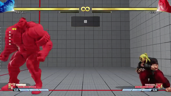 아비게일은 다른 캐릭터에 없는 점프 유예 프레임이 있고, 이때에 어떤 스페셜 무브 (필살기or 기술) 로도 점프를 캔슬할수 있으나 점프 상태이므로