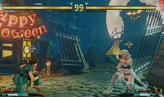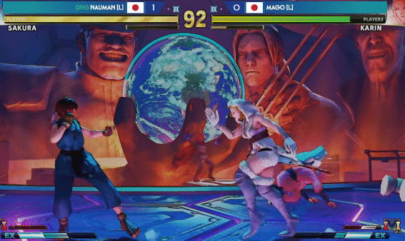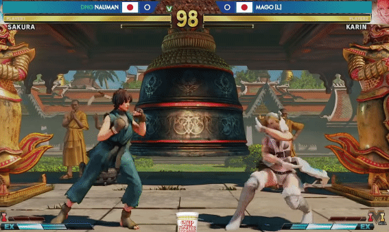 - 춘풍각 가드시 -2, 빠른기본기로 대응해주자, 단 사구라가 게이지가 있을때 EX소앵권 지를 확율이 있다.