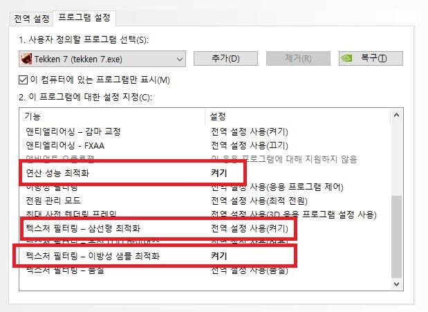 켜짐으로 설정하면 750ti 같은 그래픽 카드에서는 효과가 좋습니다.