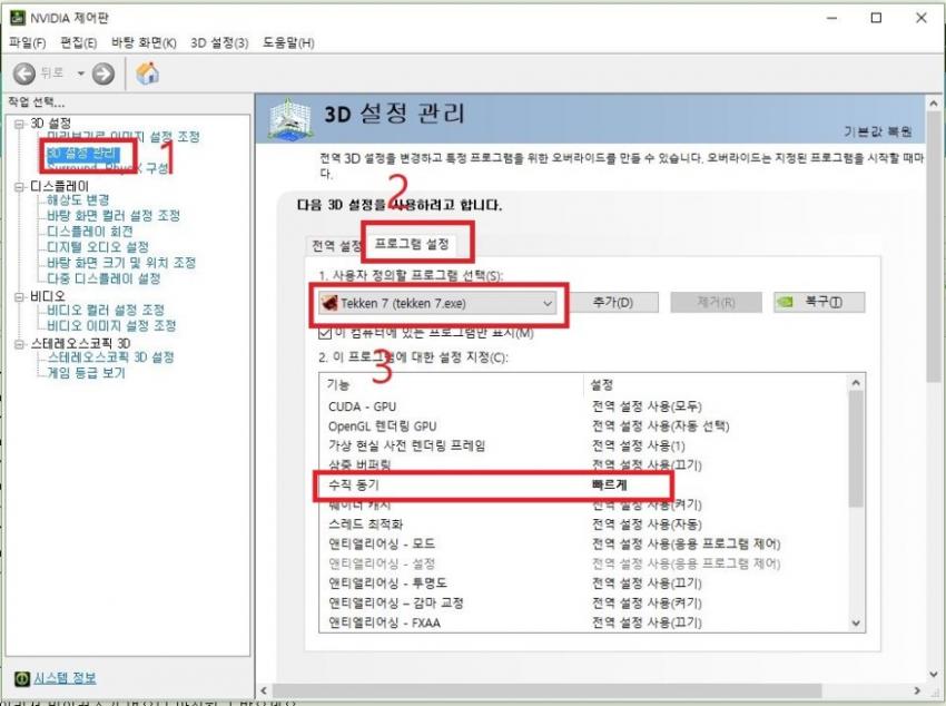 3번의 수직동기화는 꺼주세요. 더좋은 수직동기화를 사용하기 위함입니다.