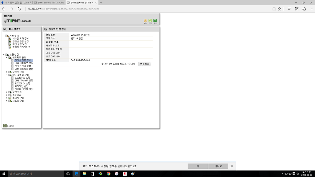 제대로 DMZ하려면 앞부분의 공유기 DMZ를 모두 설정해 주어야 한다.
