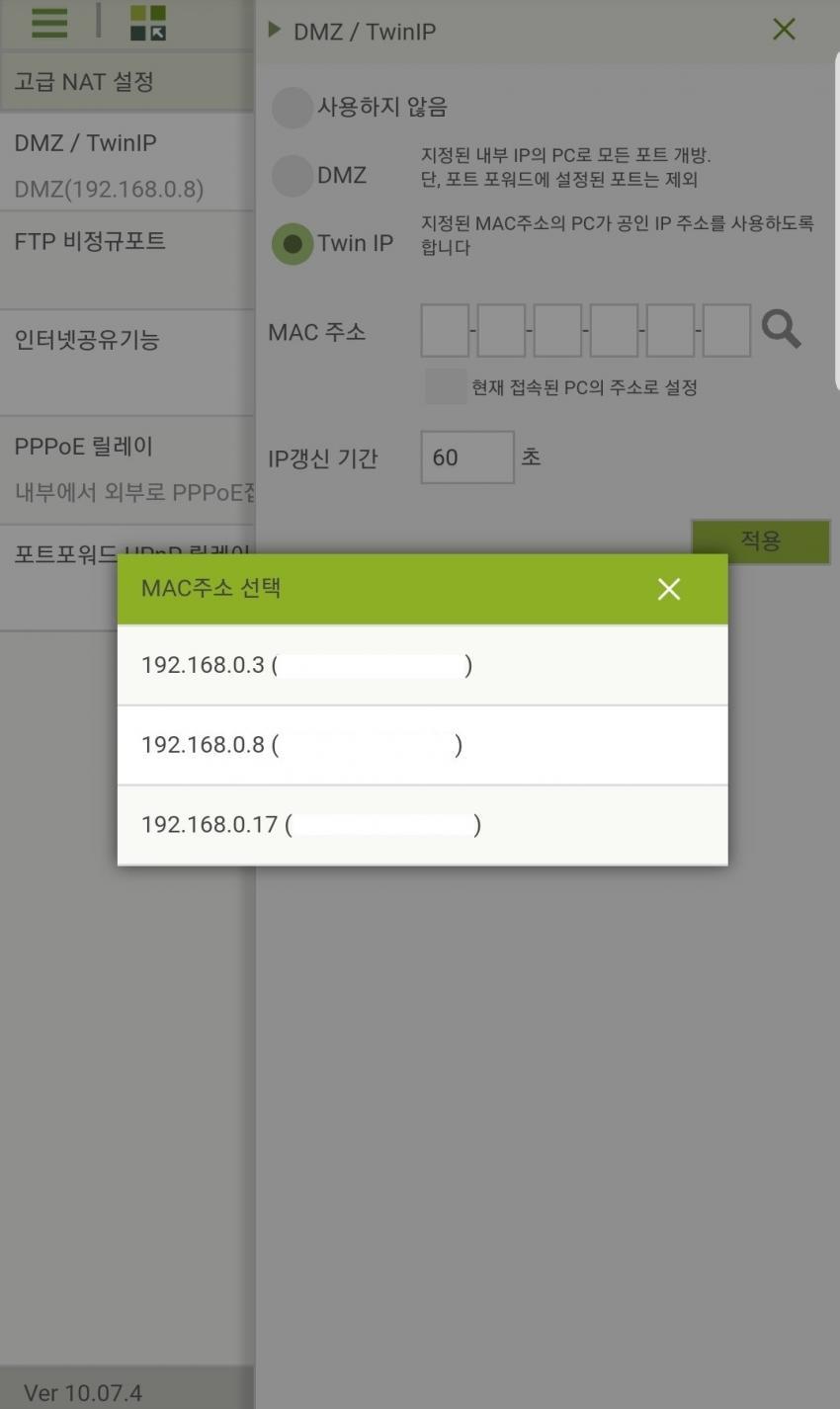 통신사 공유기어댑터 DMZ설정관련