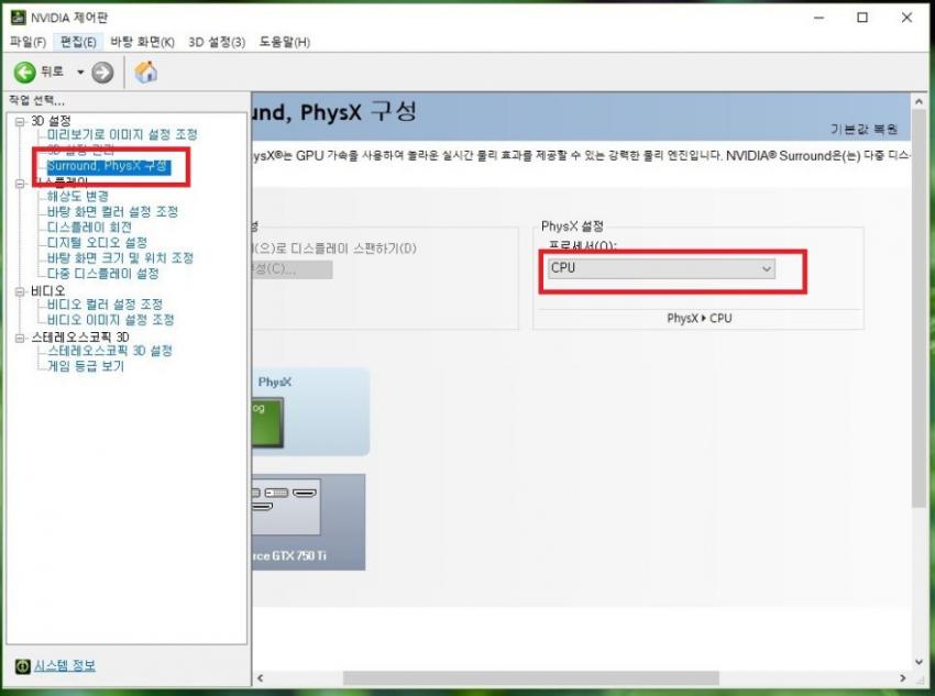 밑에 읽어보시면 피직스 드라이버를 CPU로 하는방법이 나옵니다. 이렇게 해도 화면이 끊긴다면