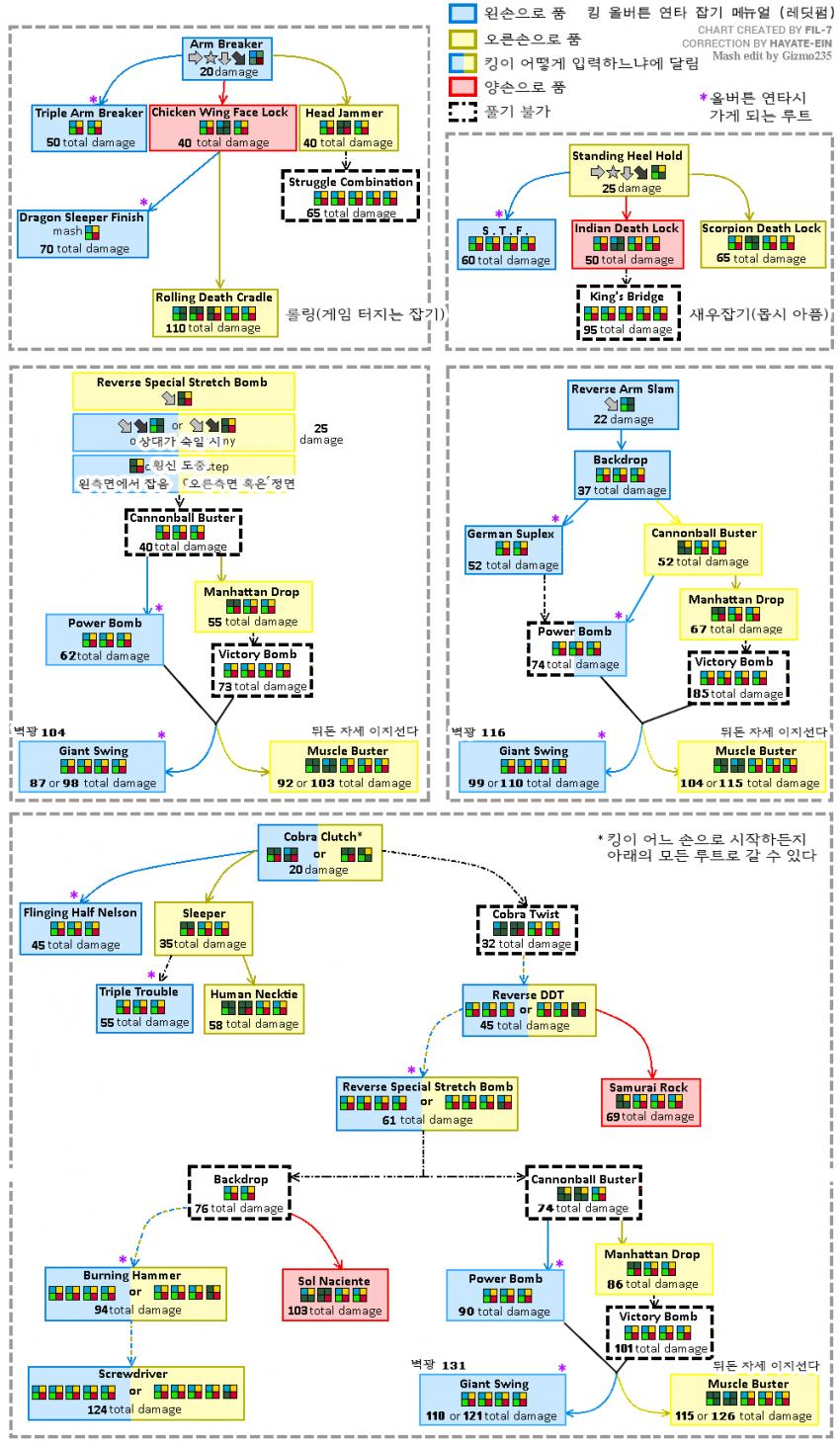 시계건 반시계건 대각선 히트시 기본 콤보가 아주 잘 들어가지만 재수없게도 정면(4번)에서 히트시 로하이까지 밖에 안 들어가고 훅싸로 스크류가 되지 않는다.