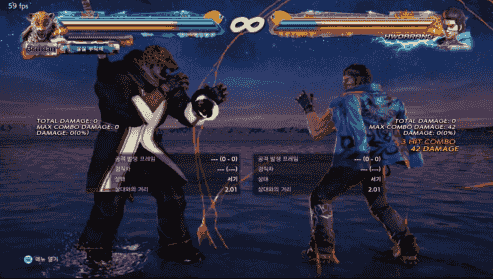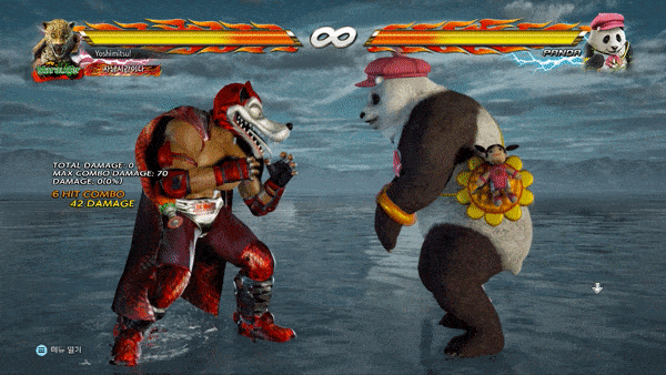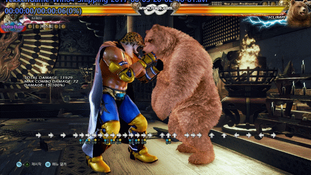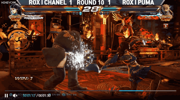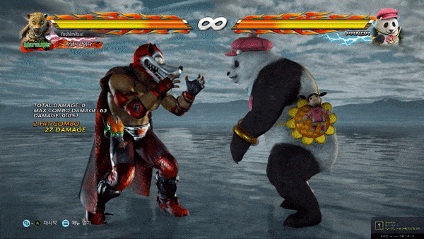 벽콤에서 원투 쎈척을 하면 쿠마가 뒤로 넘어가게된다 이를 이용한 패턴성 플레이