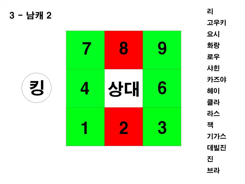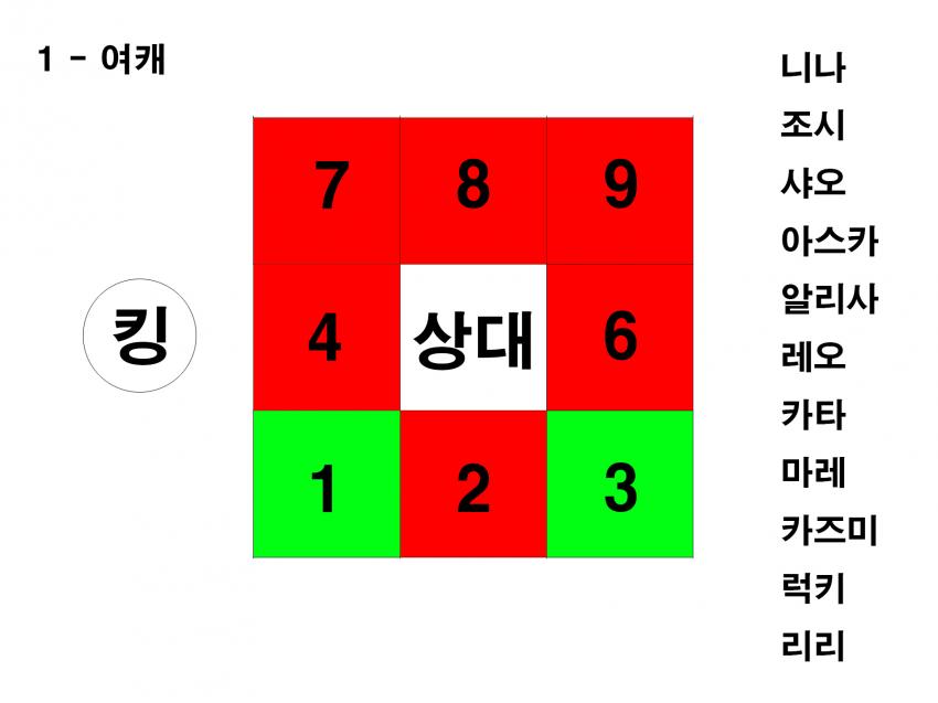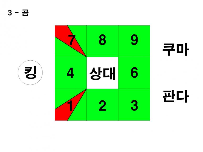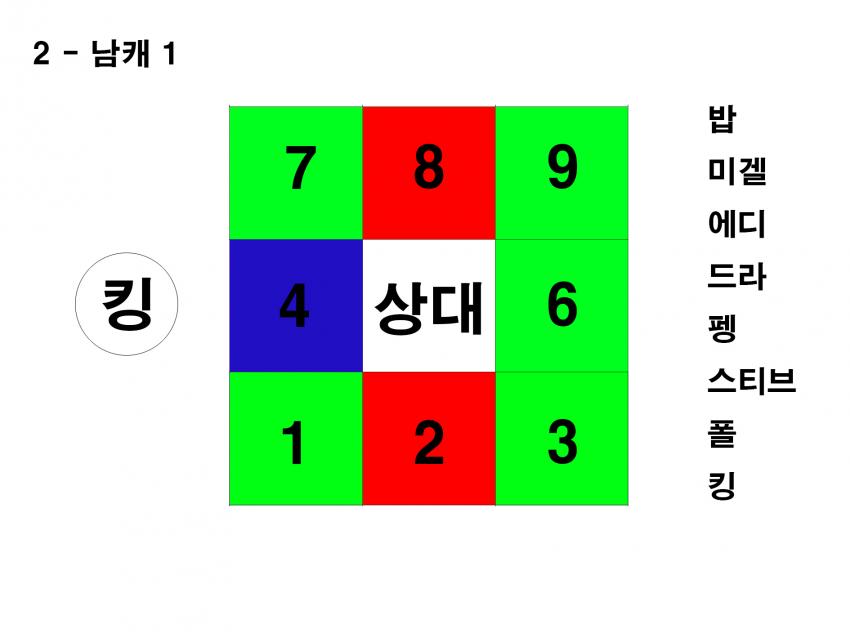 번호는 훅싸 히트시 킹 위치임 4번이면 정면, 1번이면 반시계 앞 대각선, 9번이면 시계 뒤 대각선