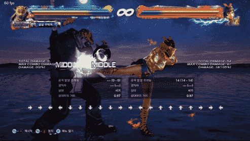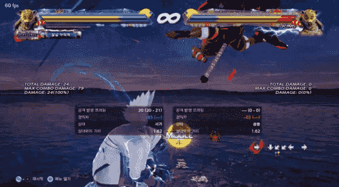 그리고 토킥이후에 대쉬를 넣어봤는데 땅에 닿아서 콤보끊기고 공중데미지로 변하더라