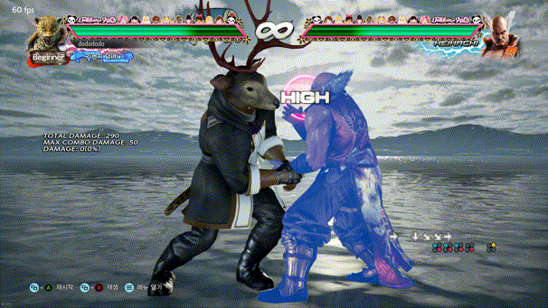 기본적으론 이걸로 때리고 여캐랑 달리 어느 대각선이던 기본 콤보가 잘 들어감으로 확실히 축이 틀어졌다 싶으면 완전 정축(4, 2 ,8)만 아니길 빌면서 로하이 훅싸를 갈겨보자.