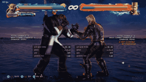 처음에는 연습모드에서 카운터 히트 마크 뜨는거 보고 카운터 나면 어떤 모션이