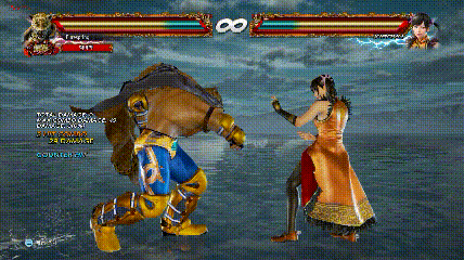 원투 22 대미지 + 원 카운터나서 원투 확정 대미지 34 = 55 대미지 ( 콤보 대미지 정도 )