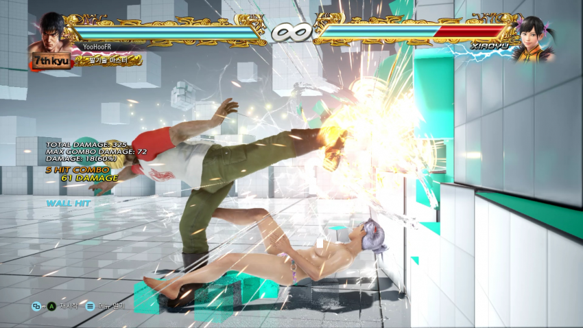 벽 앞에서 악마발 카운터를 냈거나 상대가 돌진해서 내게 오는 기술로 카운터를 맞았을 경우 악마발 한번 더 (12뎀) 확정