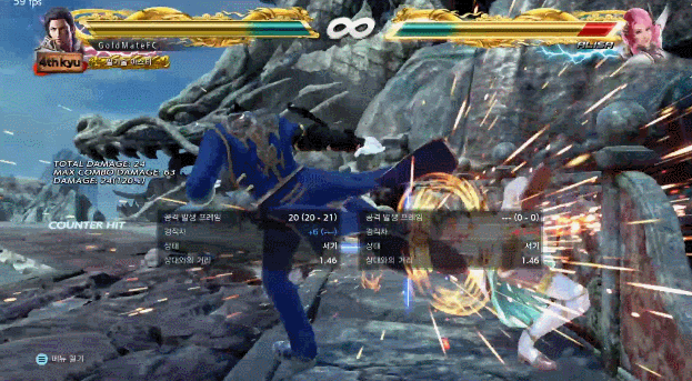 참고로 뒷무릎 앞투로 시작하는 국콤은 69 인데 곰 상대론 뒷무릎 다음 앞투가 안 맞음(불 있을 땐 들어감)