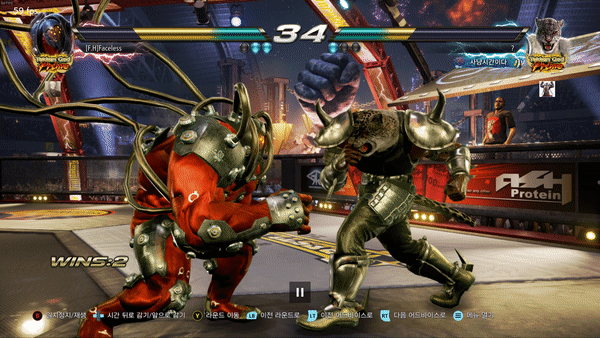 10단콤보 :2타막고 잽에끊김, 7타하단막고 기상킥(카운터,15프렘기상기-동시히트) 막타막고 기와확정 가드만 땡겨도 7타하단만 맞고 전타가드가능