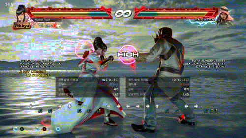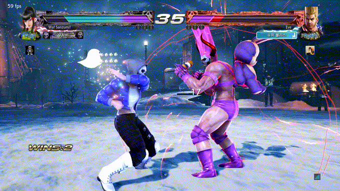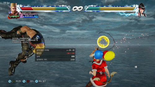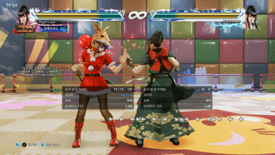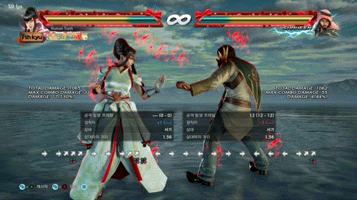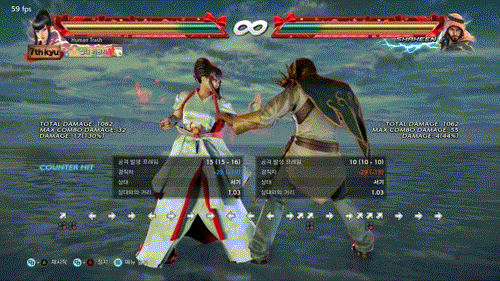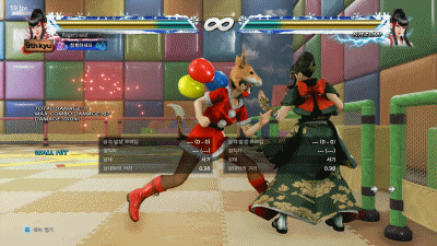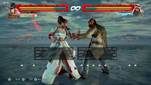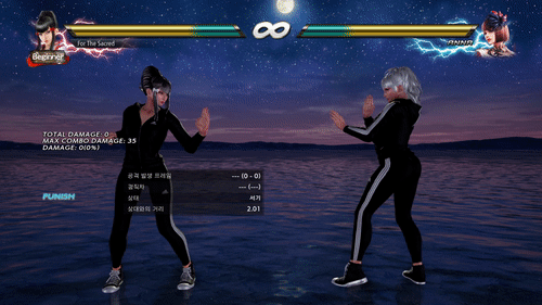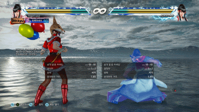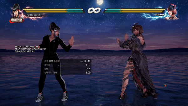 안나 악마발의 약간의 가드백에 카즈미 컷니의 절륜한 판정이 어우러져 16프레임이 뜨고,