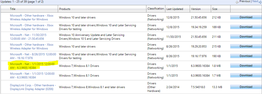Microsoft Update 카탈로그에서 Windows 8.1 및 Windows 7용 최신 드라이버를 다운로드할 수도 있습니다. 방법은 다음과 같습니다.