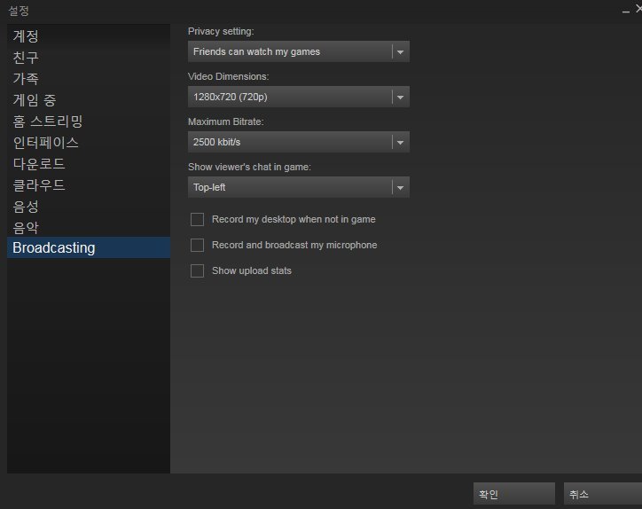 스팀 방송도 아마 마찬가지일 거에요.