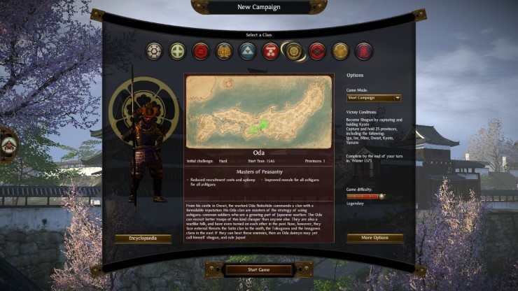 오다 가문의 별명: 크고 강한 농민의 친구, Al가 잡으면 금방 망하는 가문 1, 민초의 난 특성: 뛰어난 아시가루(야리, 유미, 철포) 생산 비용 감소 및 유지비 감소, 사기 증가 특수병종: 나가에야리 아시가루(장창 아시가루), 창벽진 상태가 되면 상성을 무시하고 크게 피해를 줍니다. 별명의 이유: 초반 주력을 쓰는 아시가루의 능력을 매우 좋게 향상시키주기에 매우 위협적입니다. 더불어 사무라이라 할지라도 경험많고 방탄 아시가루는 함부로 대할 수 없습니다. 또한 아시가루 자체가 돈이 잘 들지 않아서 물량 공세가 가능합니다. 허나, Al가 하면 주변 가문에게 소멸당합니다.