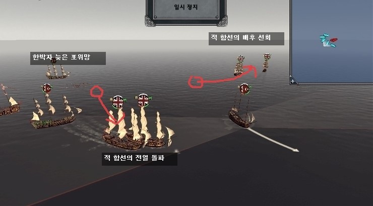 가 아니라, 적 역시 아군을 반포위 하려고 아군함대의 후미를 반포위 하려고 하는군요