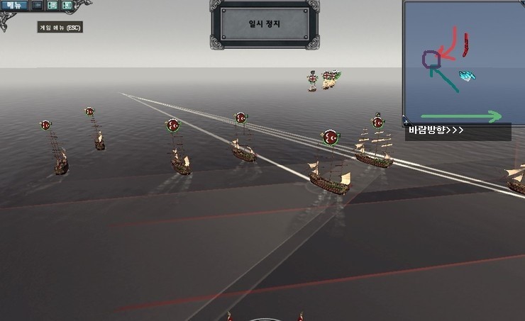 바람머리를 선취했을때 이점은 함대가 순풍을 받게 된다, 즉 적 함대는 역풍을 받게 되겠죠?