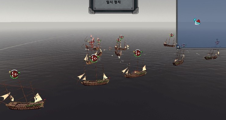 하지만 미니맵에서 보듯이 아군 오스만 함대가 영길리 함대에 비해 조금 전체 포진면에서 불리한 점이 있는데 착시입니다아