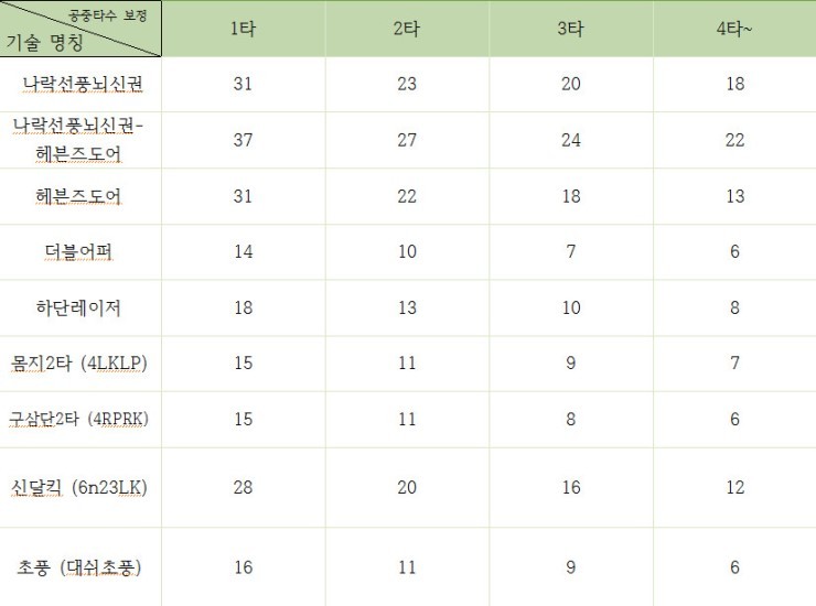 공중초풍 후에 대쉬 구삼2타가 안들어가는 것으로 확인되었는데, 만약에 틀렸다면 댓글에 제보 바람