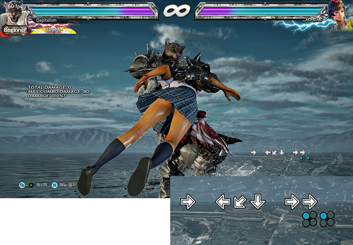 근데 이번 7에 아머킹이 추가되면서 이 상태에서 3636(?) 을 입력하면 풍신 스탭이 나가게 됨. 그래서 아래와 같이 풍신스텝중 나가는 기술을 입력 할 수 있음.