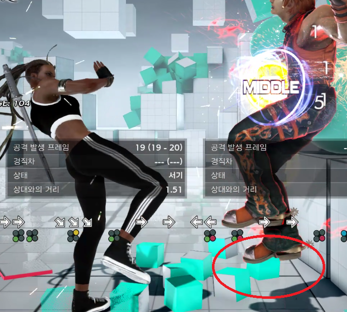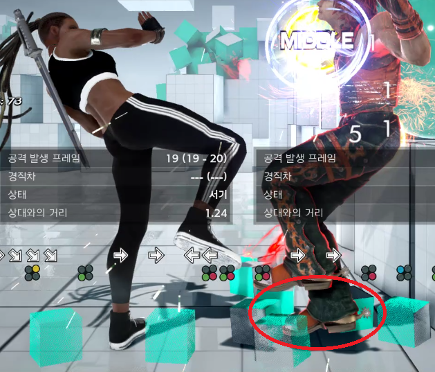 가드했는데 상대가 앉은상태일땐 중단이기 때문에 이걸로 딜캐합니다