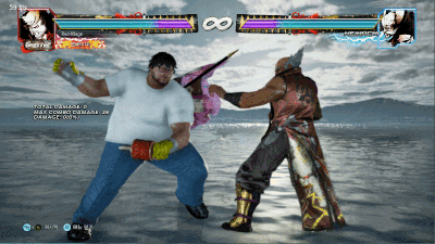 아스카의 안개차기와 커맨드도 모션도 동일합니다. 공중히트시 스크류 유발되고 카운터 히트시에는 타격잡기로 이행되는데 데미지가 쏠쏠합니다. 그리고 호밍성능이 있어 횡이동을 하는 상대를 잡아냅니다.