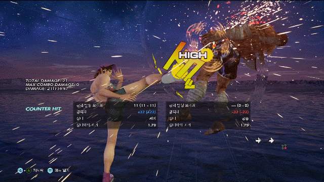 미야비 (2_3rp) 14프레임 때리고 -1 후딜12 카운터시 자경퇴 (기상lprk) 확정