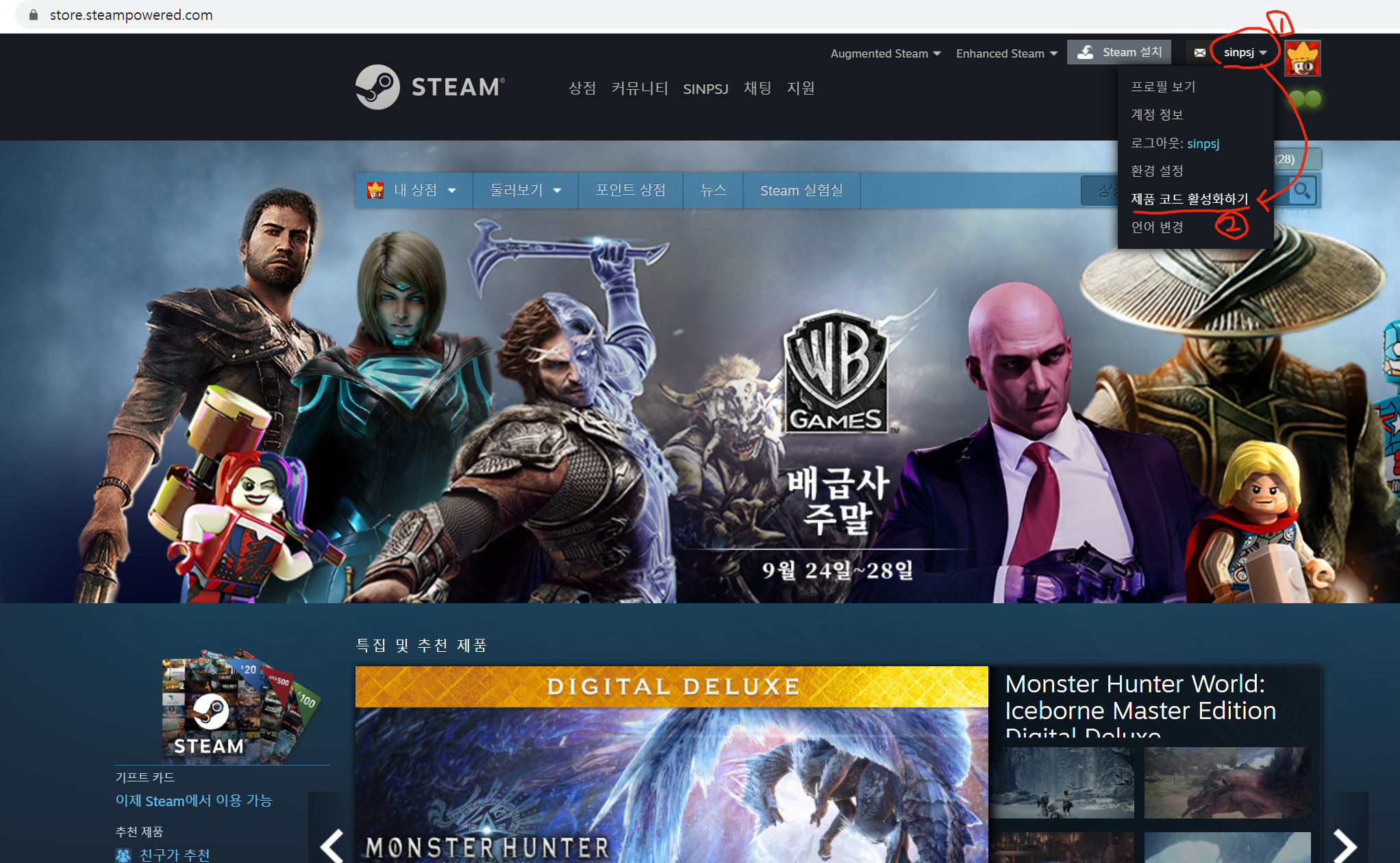 설명1) 스팀 클라이언트 왼쪽 맨아래를 보면 "+" 아이콘이 보일 것이다.