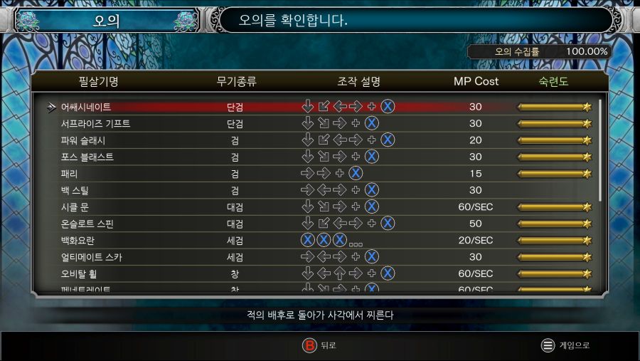 오의 100% 오의 목록