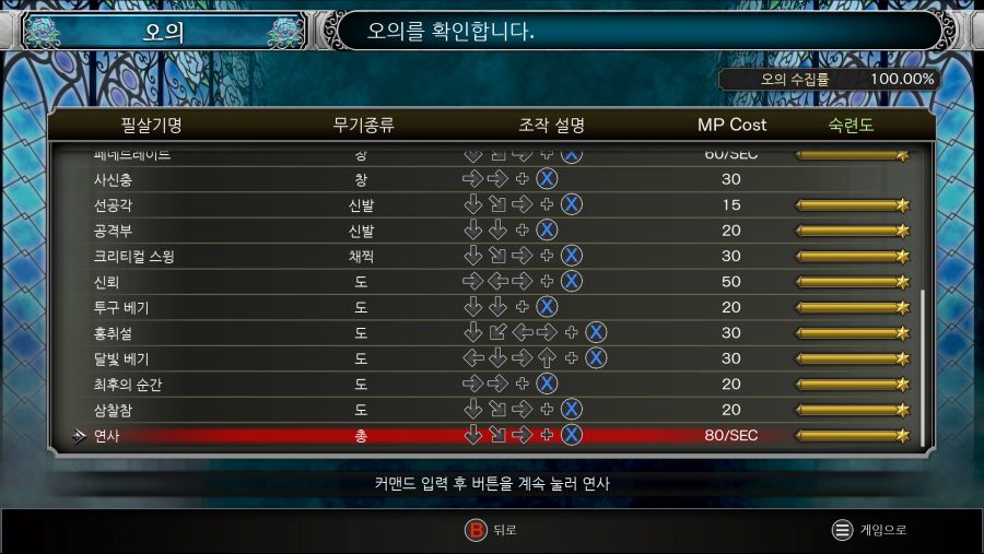 갓 크로스, 인크립트 오키드 이렇게 2가지 추천합니다. 갓 크로스는 일정 확률로 적을 석화(스톤)로 만들며, 인크립트는 제다이검(광선검) 입니다. 오의는 둘다 (↓↘→+□)