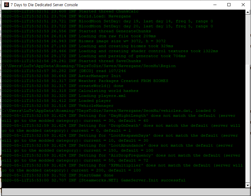 이제 serverconfig.xml을 만져준 후에 .bat파일을 실행하면 서버가 열린다