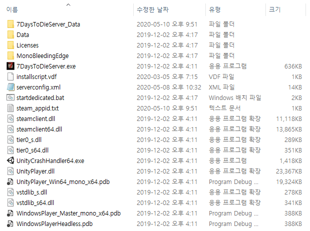 설치한 후에 설치경로로 들어가면 이런것들이 있을텐데, startdedicated.bat은 없을거다