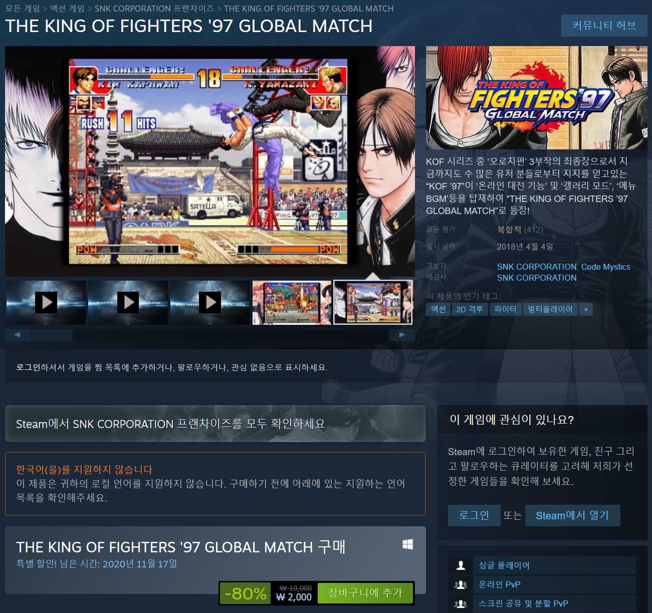 같이 할 사람이 있고 킹오파 팬이라면 비싸지도 않으니 살만하네요