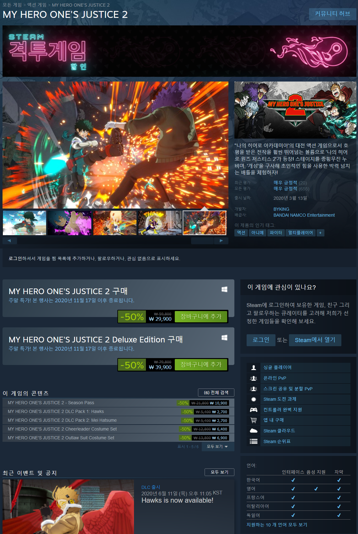 - MY HERO ONE'S JUSTICE 2 Deluxe Edition 50%(39,900원 최저가)