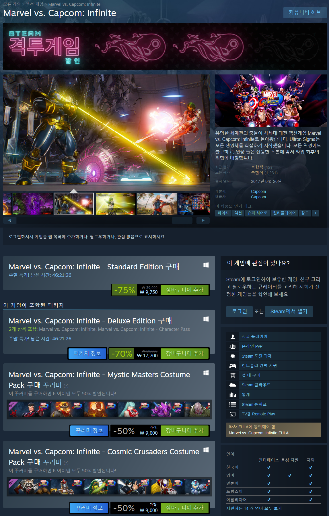 - Marvel vs. Capcom: Infinite - Deluxe Edition 70%(17,700원 최저가)