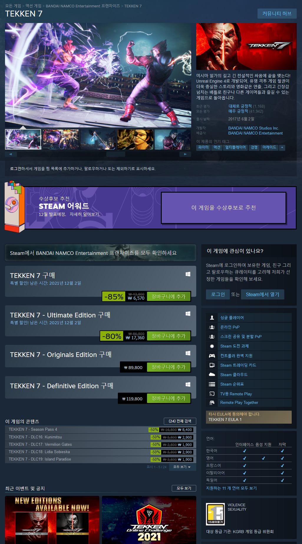 - TEKKEN 7 85% (6,570원 최저가)