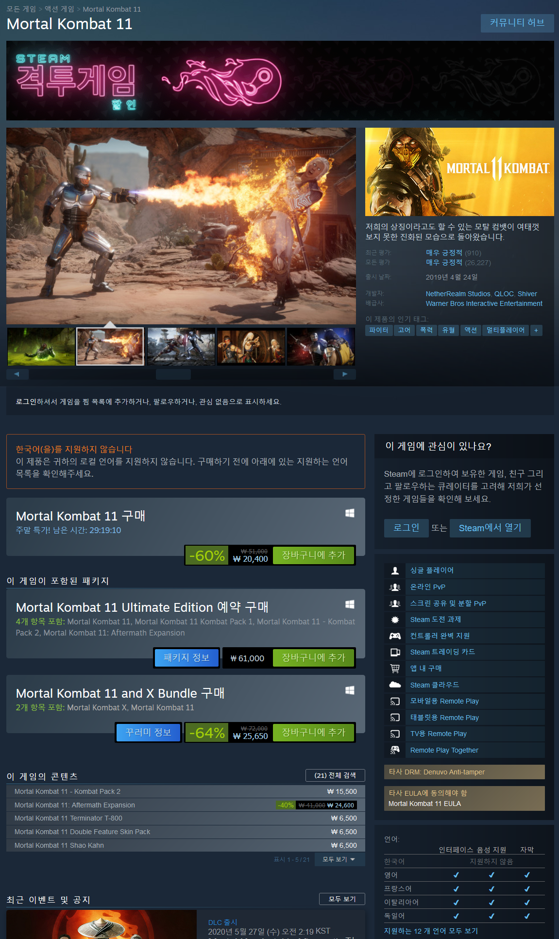 - Mortal Kombat 11 Ultimate Edition 0% (61,000원 최저가)