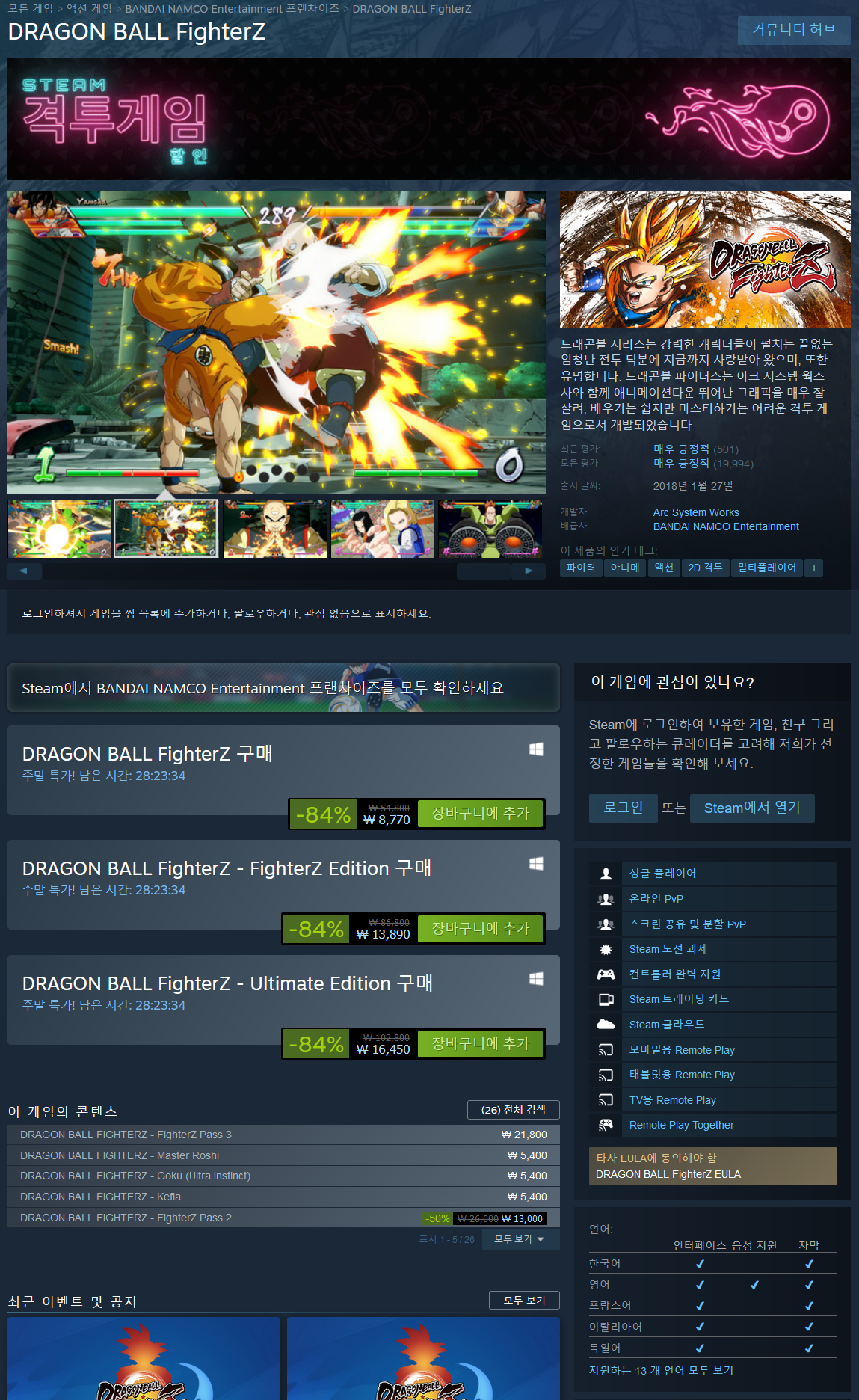 - DRAGON BALL FighterZ 84% (8,770원 최저가)
