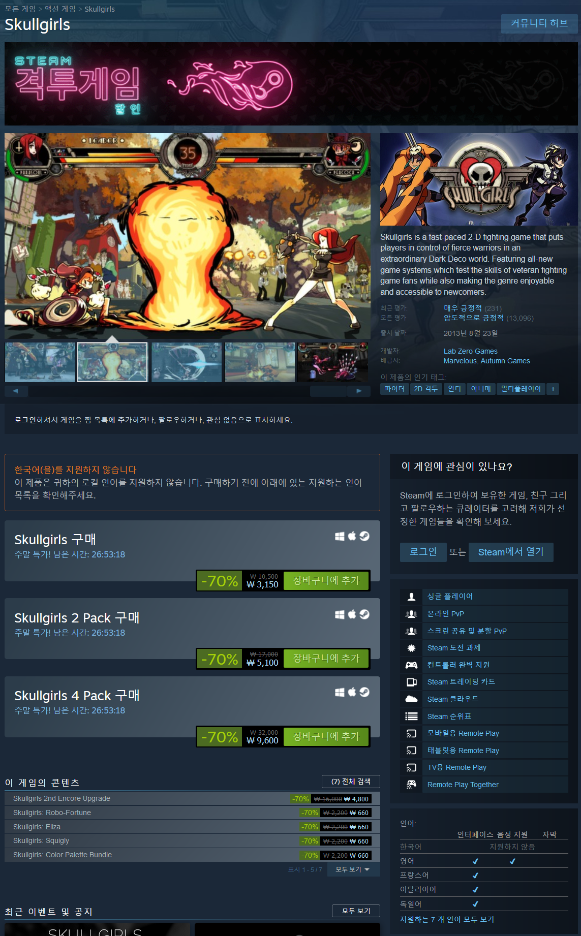 //할인율은 제작사 사정에 따라 다릅니다. 스팀세일(여름,겨울,기타)또는 제작사에서 상시로 할인할 때를 노리세요!!