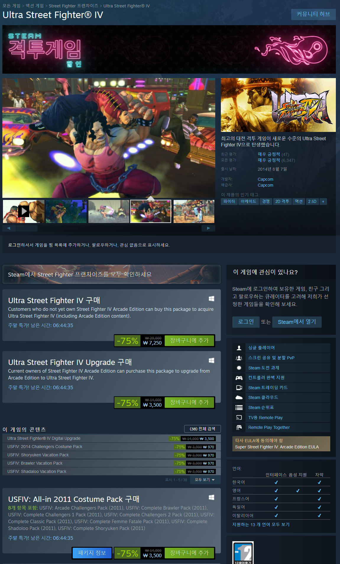 - Ultra Street Fighter IV 75%(7,250원 최저가)