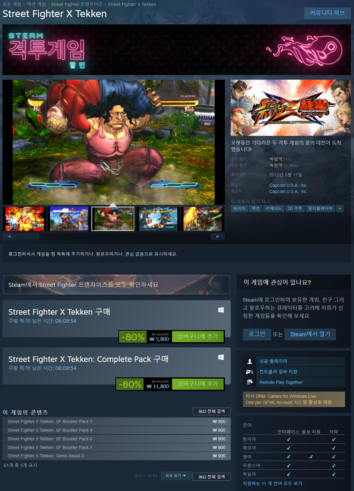 - Street Fighter X Tekken: Complete Pack 80%(11,800원 최저가)