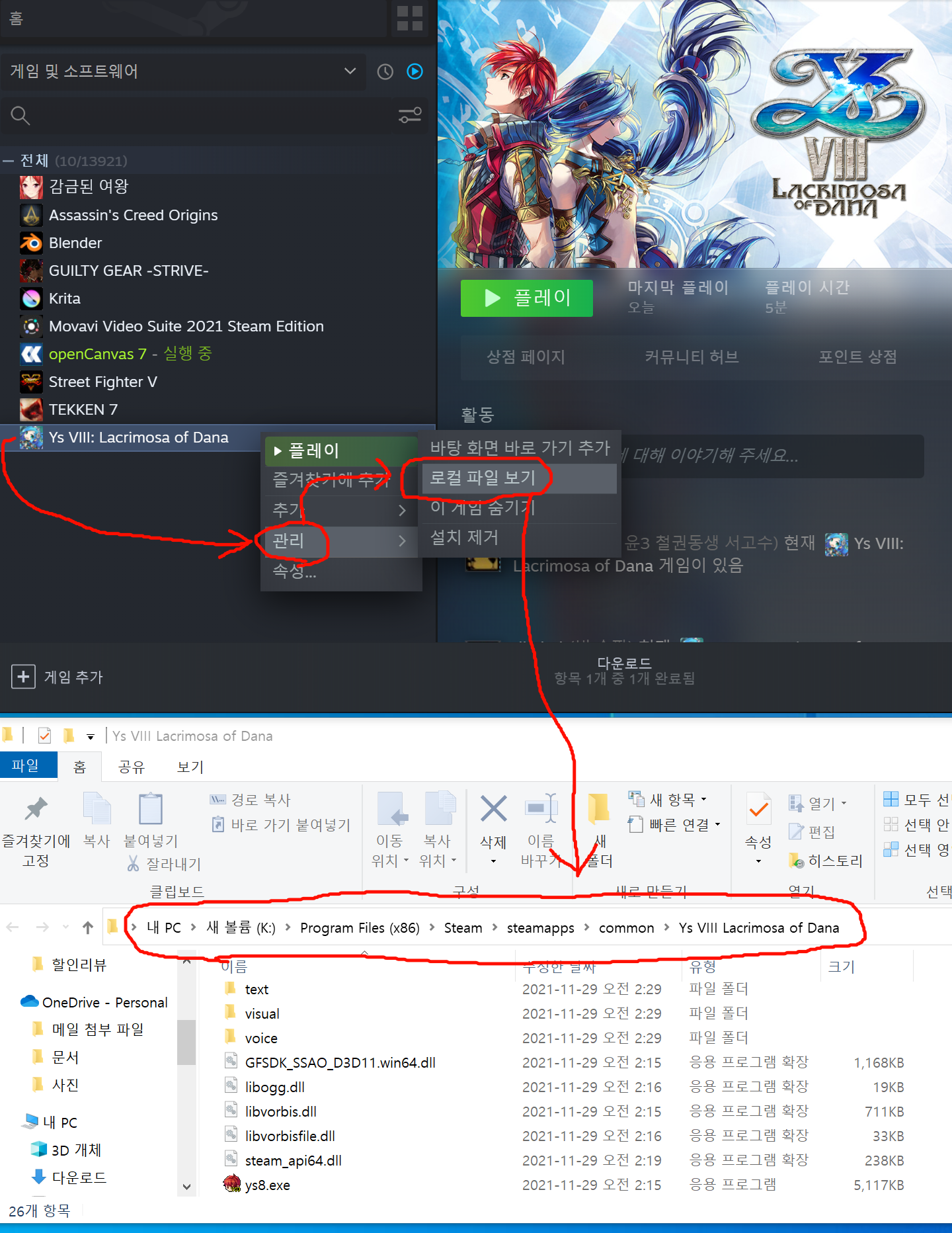 스팀>라이브러리>이스8>마우스오른쪽클릭>관리>로컬파일보기